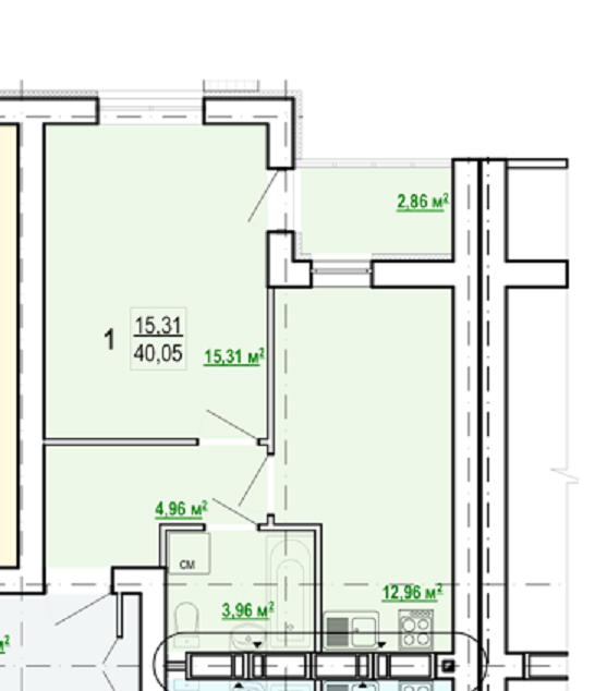 Від забудовника встановлено МП вікна, міжкімнатні перегородки, залізні вхідні двері, комунікації підключені до квартири, фасад утеплений зовні.