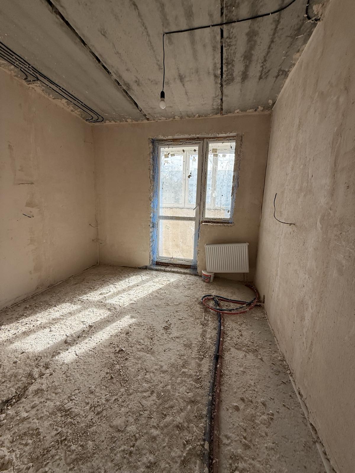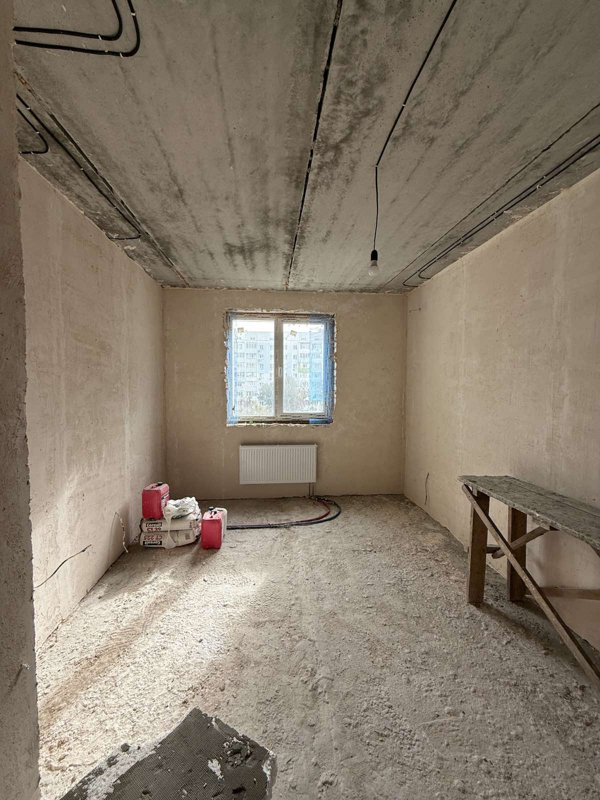 У квартирі розпочато ремонт, зроблено чернові роботи: розведення електрики, штукатурка стін, балкон засклений, нові вхідні двері. Встановлено лічильник на тепло.