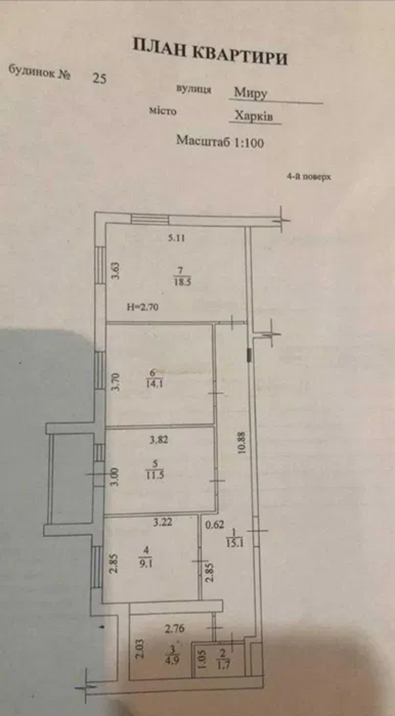 Продам 3 кімнатну квартиру по вулиці Миру 25 (3 будинок від метро), прекрасний 4 поверх з 9, площею 77м.