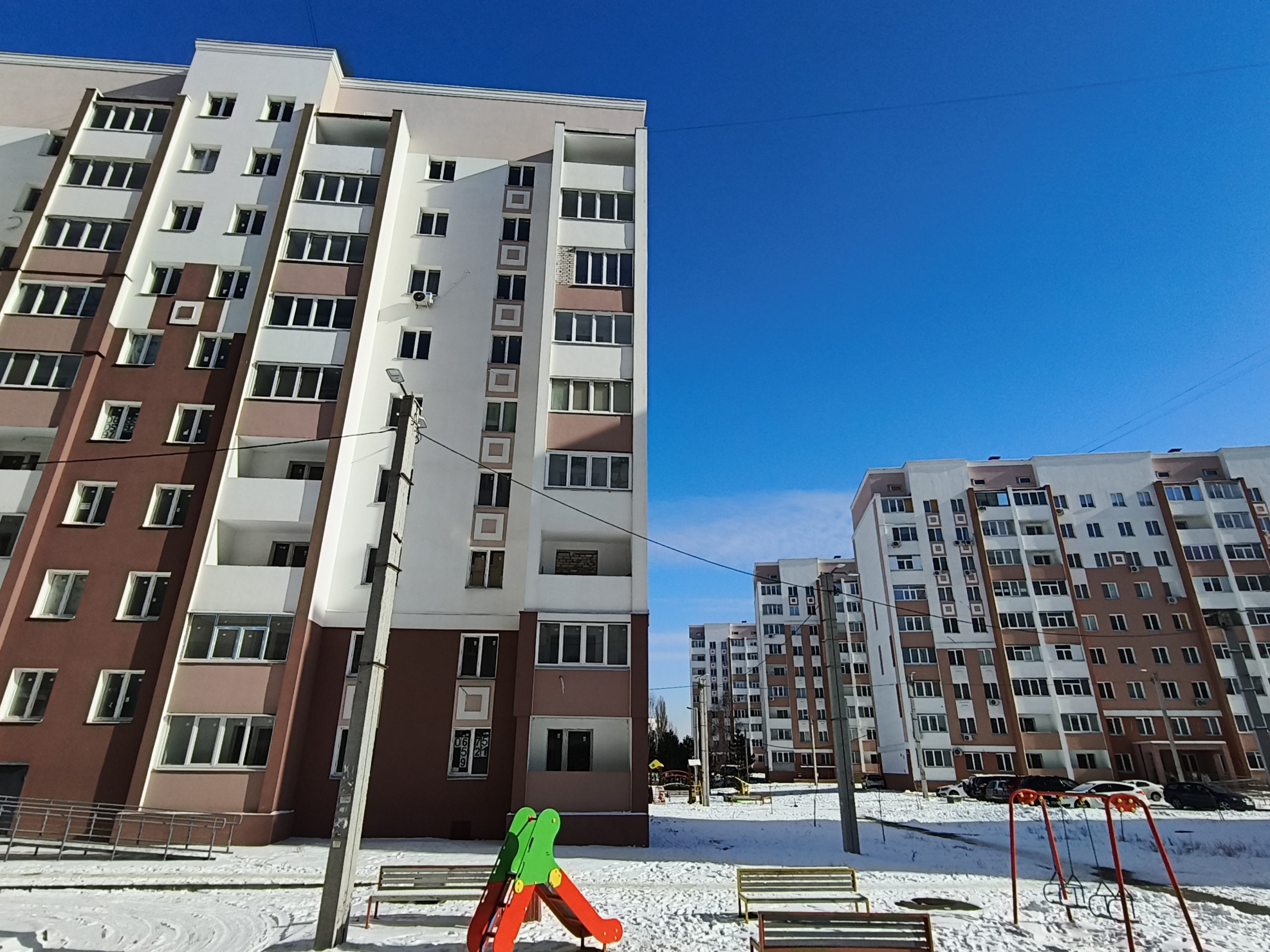 Квартира знаходиться на невисокому 2-му поверсі 9-ти поверхового будинку. Не торцева. Вид з вікон у двір на дитячий майданчик.