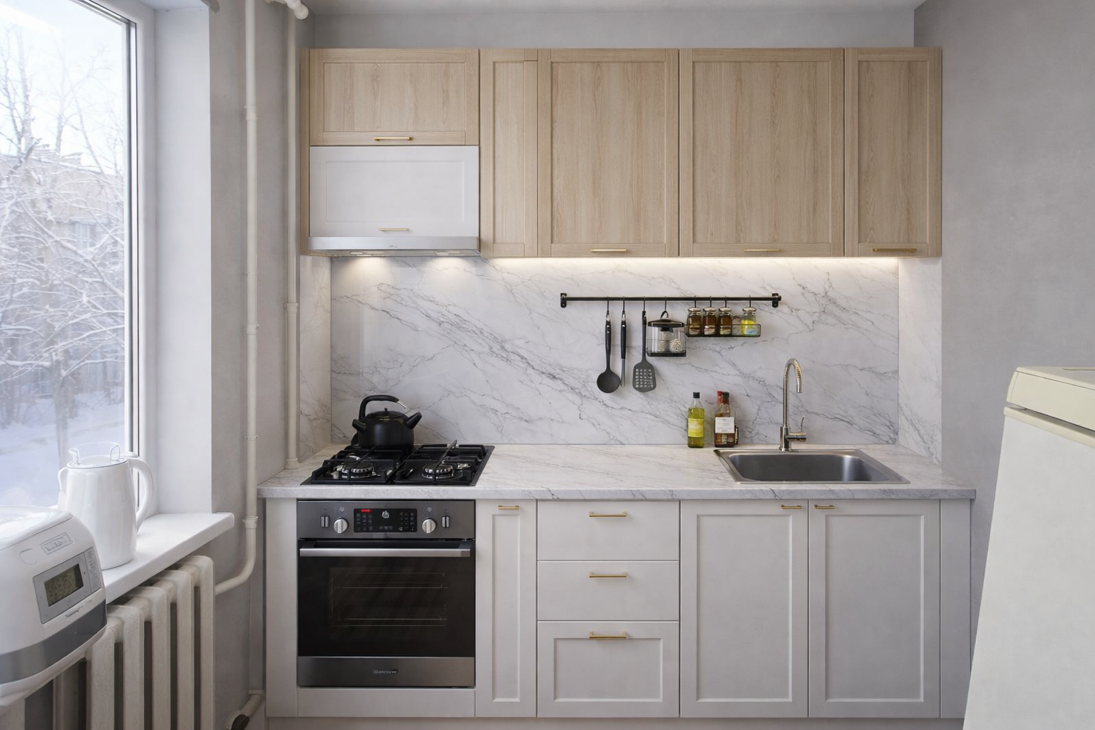 Кухня готова під ремонт – плитка або штукатурка.