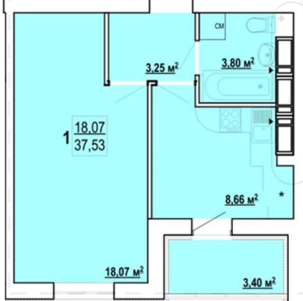 Загальна площа 36.7 м2. Кухня: 8.5 м2.