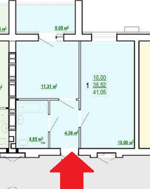 Продам 1 кімнатну квартиру S=41 м2