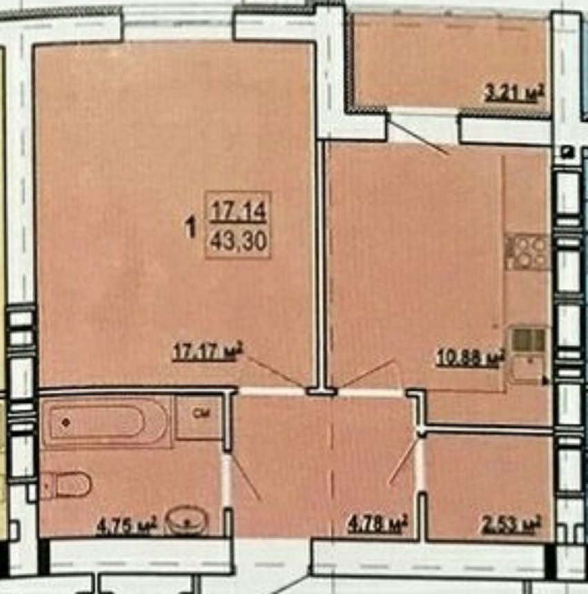• Розмір нерухомості: 44 м²