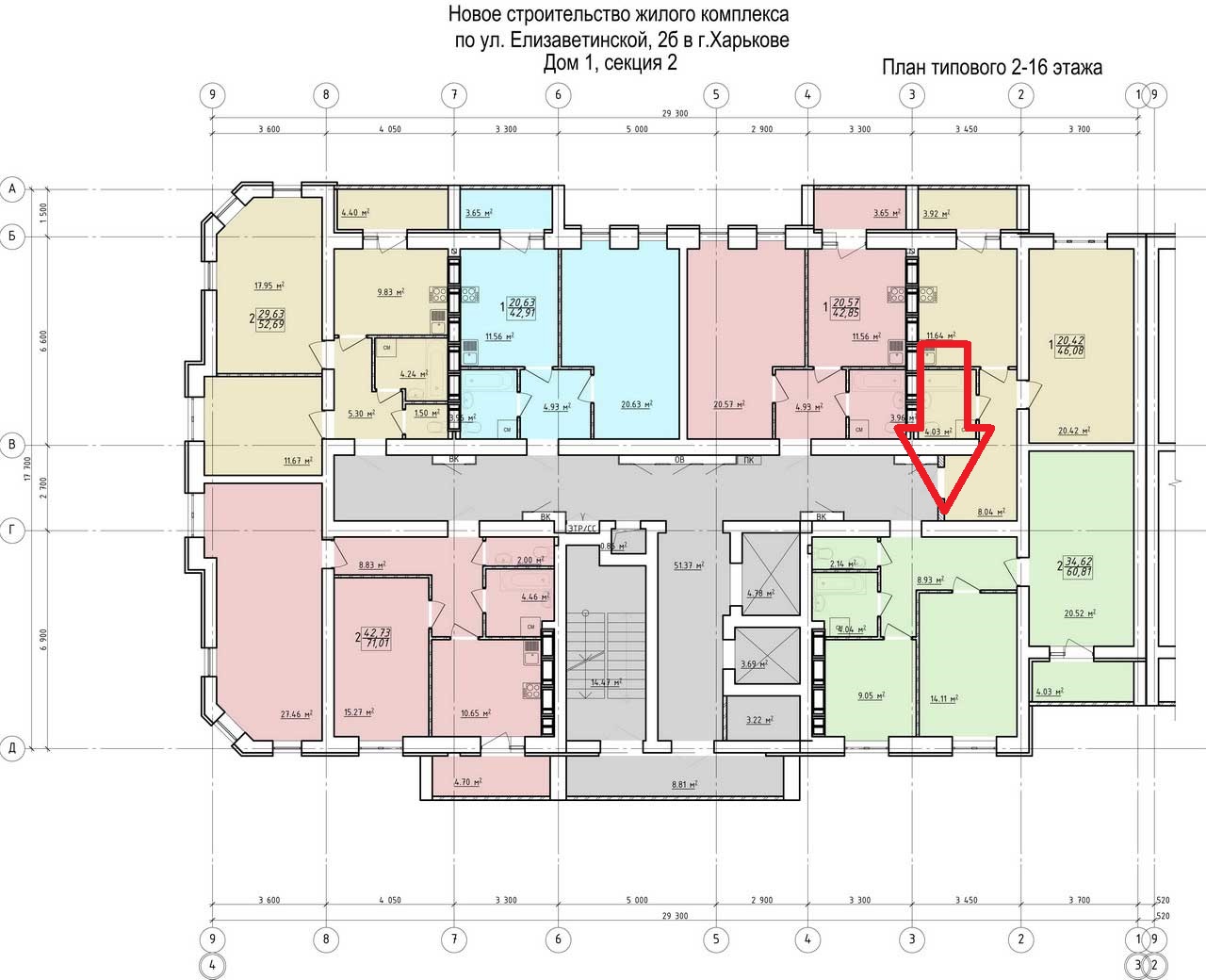 Площа 61м.