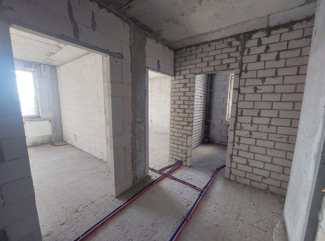 Квартира у будівельному стані під ремонт. Встановлено лічильники на воду.