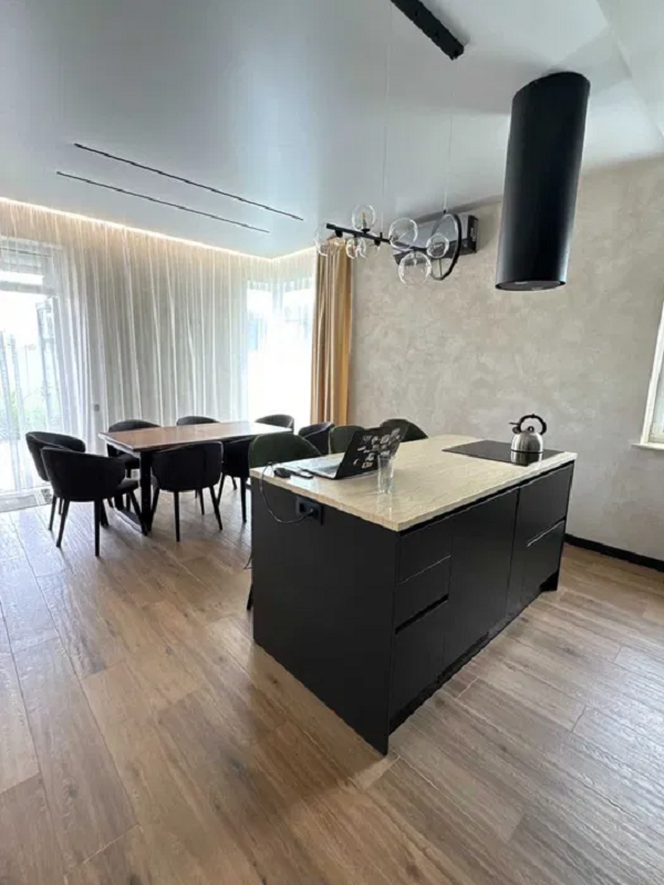 У Продажу Будинок площею 180 м² розташований на ділянці 12 соток. Всередині виконаний сучасний дизайнерський ремонт: простора кухня-вітальня з панорамними вікнами, тепла підлога, якісне освітлення, стильні меблі, 4 кімнат, вітальня, 2 санвузли та веранда з просторим двором.