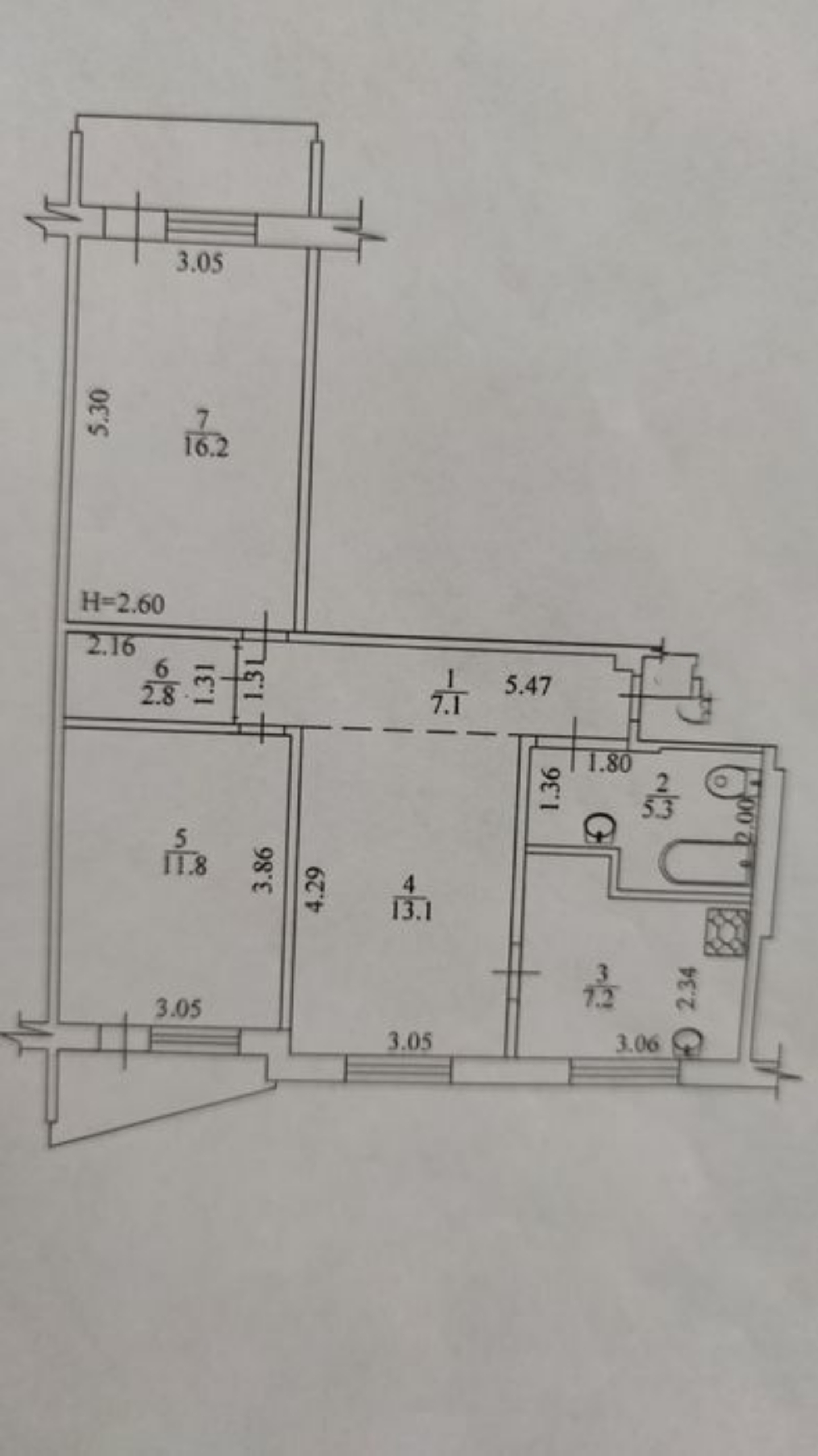 Виконано перепланування (узаконено): кімнати роздільні, санвузол суміщений, два балкони на різні сторони, виходи на балкони з кімнат.
