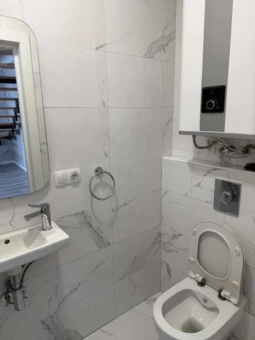 Пропонується сучасна 3-х кімнатна, дворівнева квартира з якісним дизайнерським ремонтом у світлих нейтральних тонах.