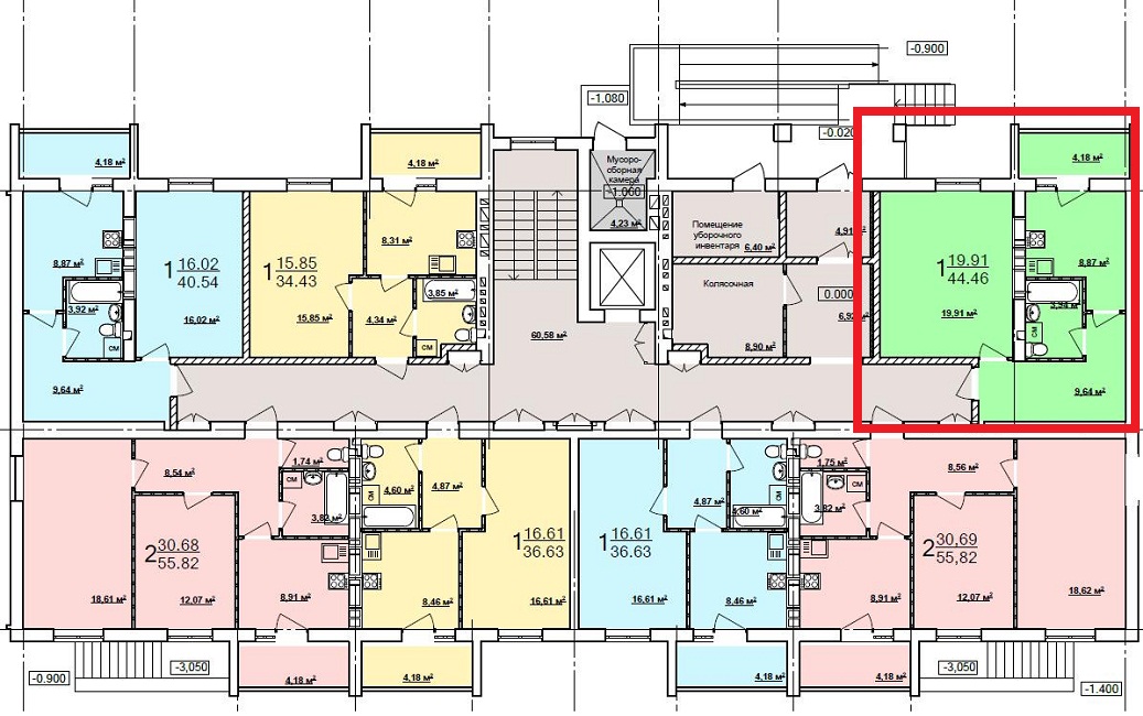 • Спальня/кухня м2: 20/9