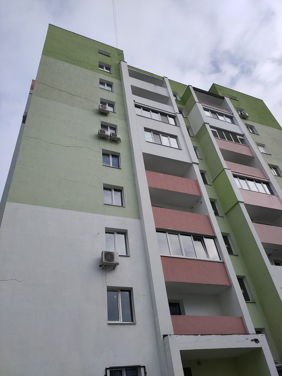 Квартира знаходиться на середньому 5-му поверсі 9ти поверхового будинку. Вид з вікон у двір.