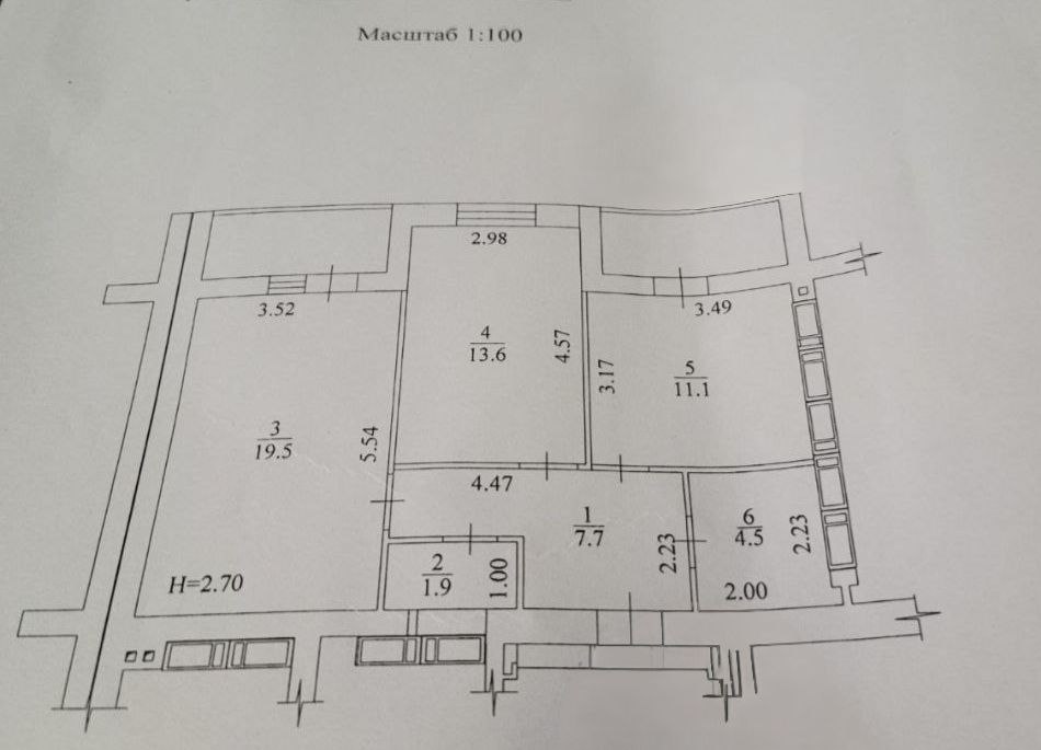 Загальна площа квартири – 66 кв.м, 2-і роздільні кімнати – 13.6 кв м та 19.5 кв м з виходом на балкон, простора кухня – 11.1 кв м з виходом на балкон, санвузол роздільний, висота стелі 2.7м.