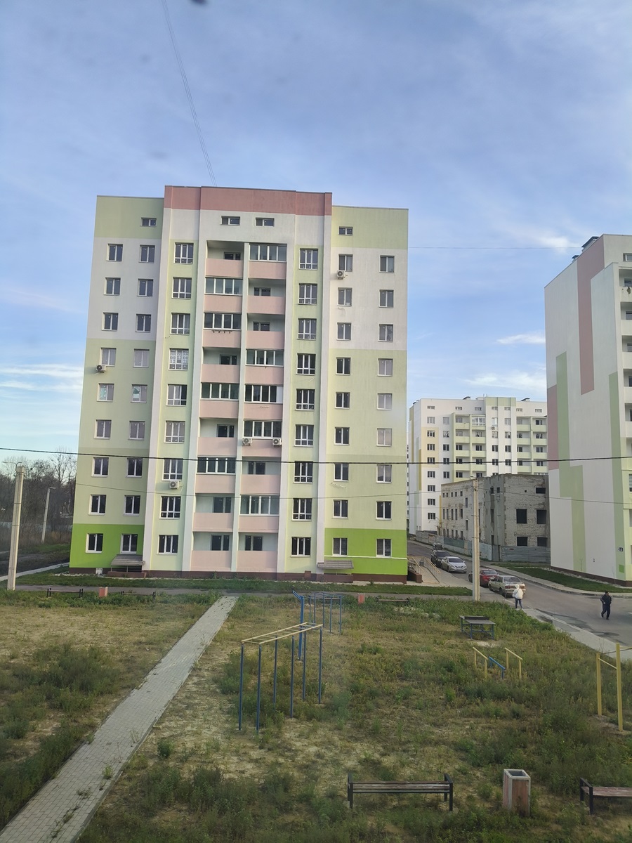 Квартира знаходиться на середньому 6-му поверсі 9-ти поверхового будинку. Не торцева. Вид з вікон у двір.