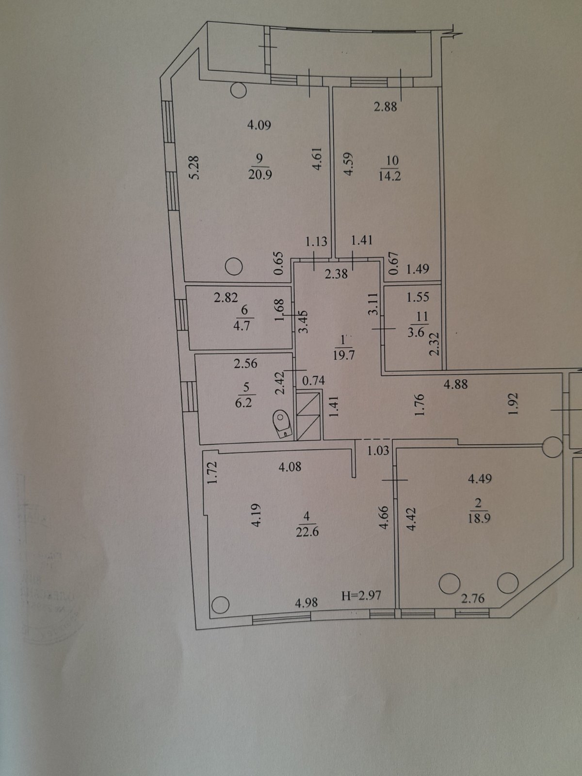 Велика площа – 117м2, світла, простора.