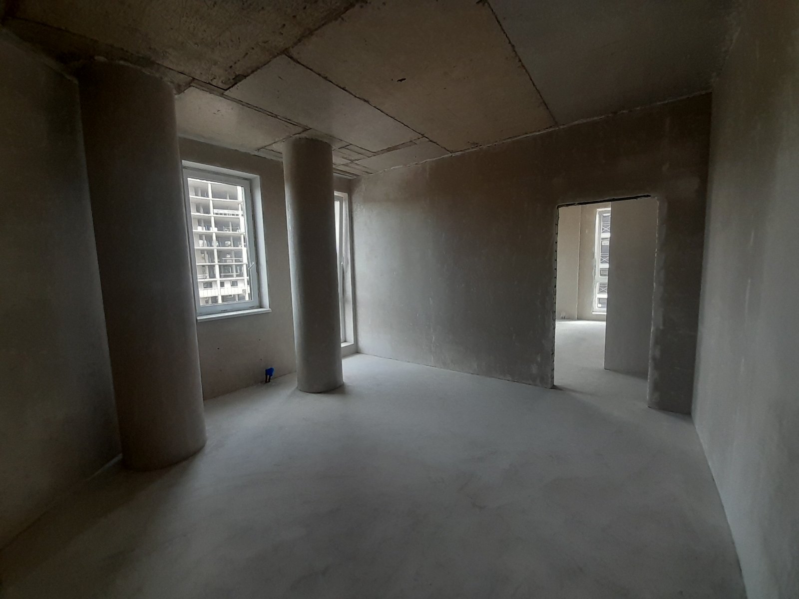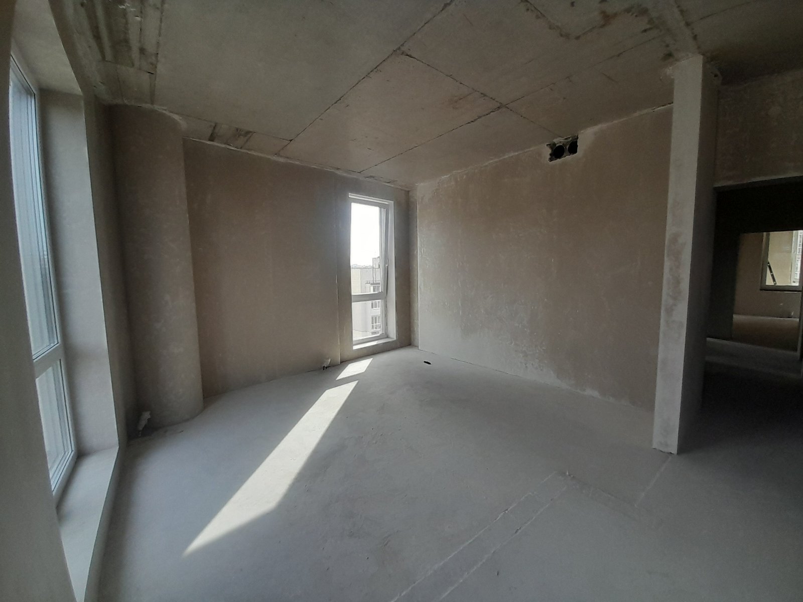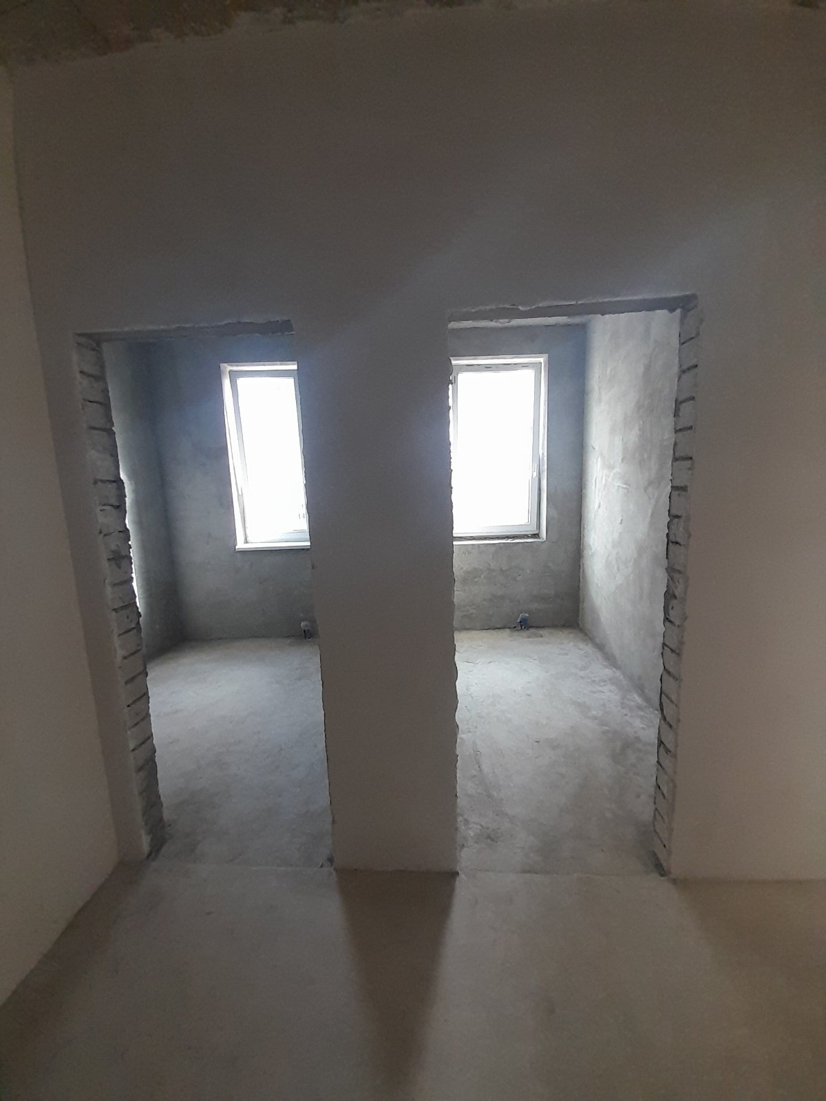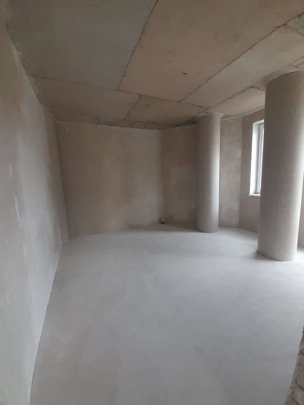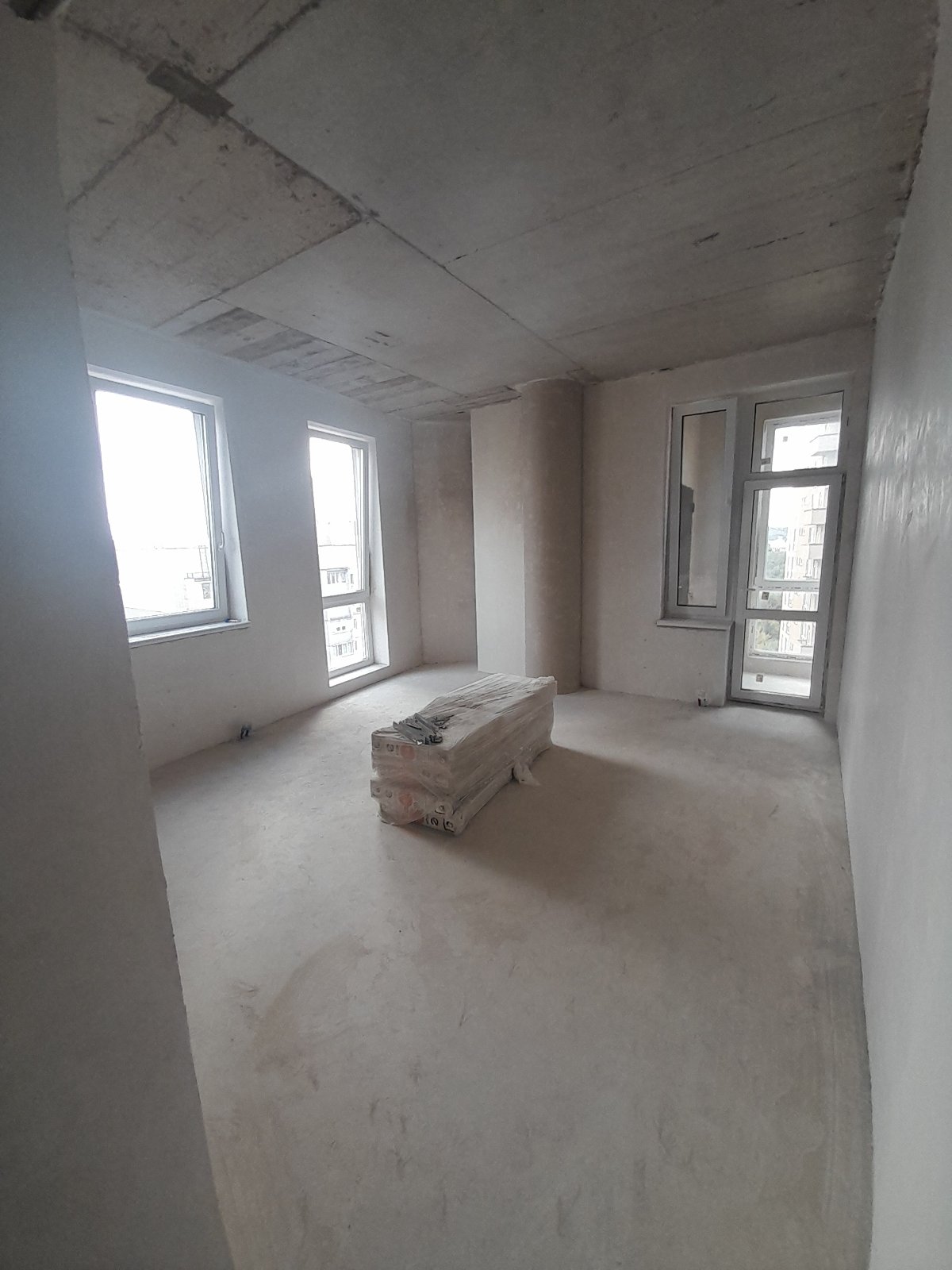 вікна замінені на дорогі німецькі, встановлені вхідні двері, зроблена стяжка, штукатурка стін, укосів, колон.