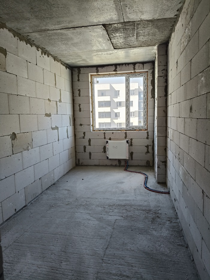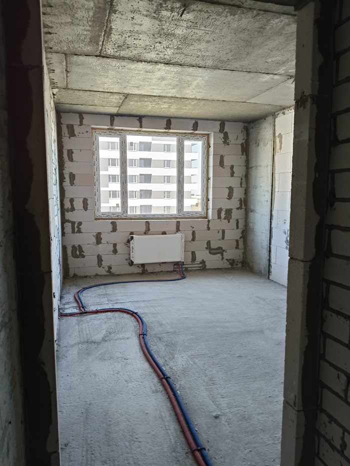 Квартира у будівельному стані під ремонт. Встановлено лічильник на тепло, світло та воду.