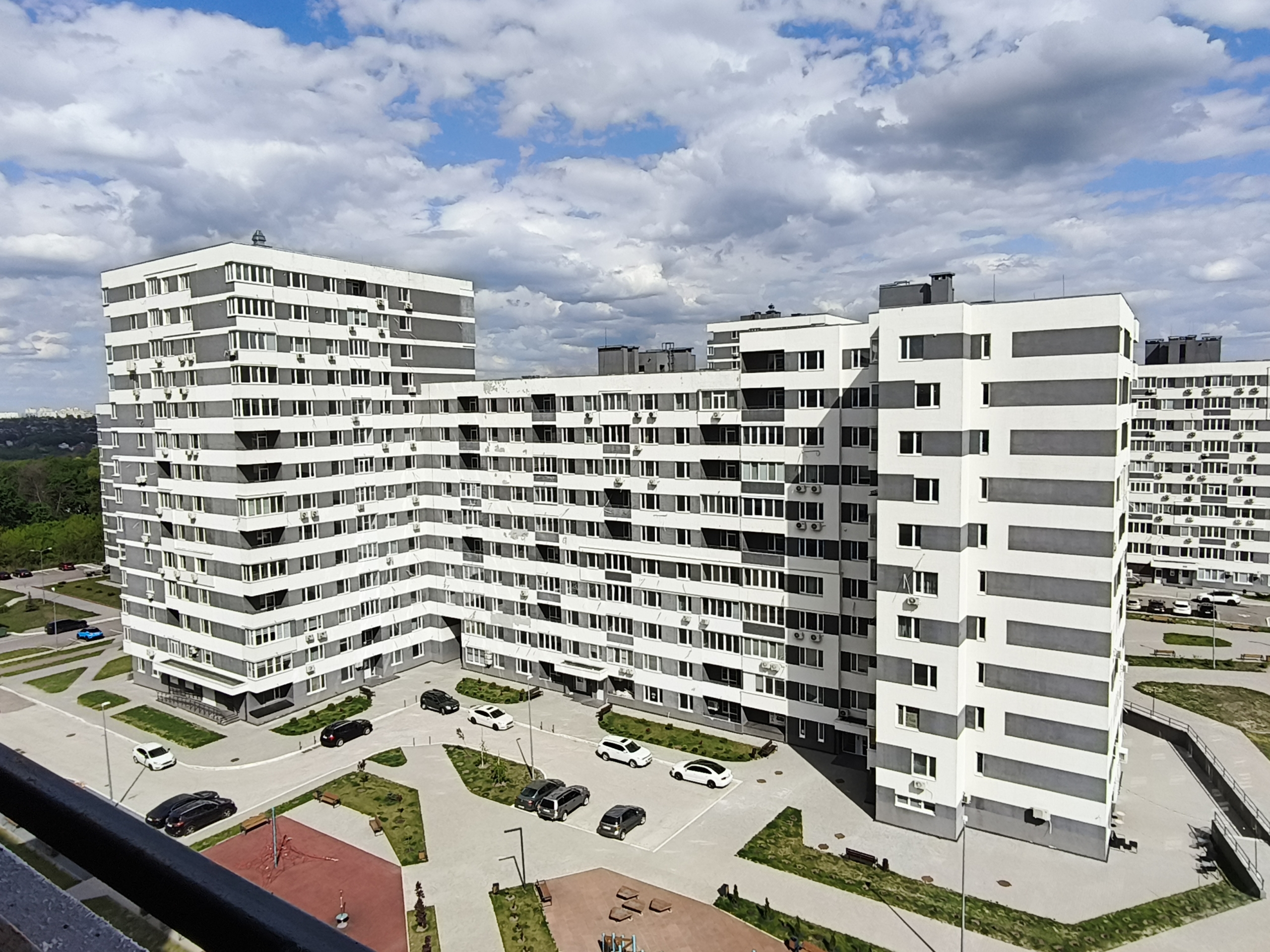 Територію комплексу закрито. Комплекс облагороджений, є наземний паркінг, дитячі майданчики, на перших поверхах комплексу є: сад, салон, стоматологія.