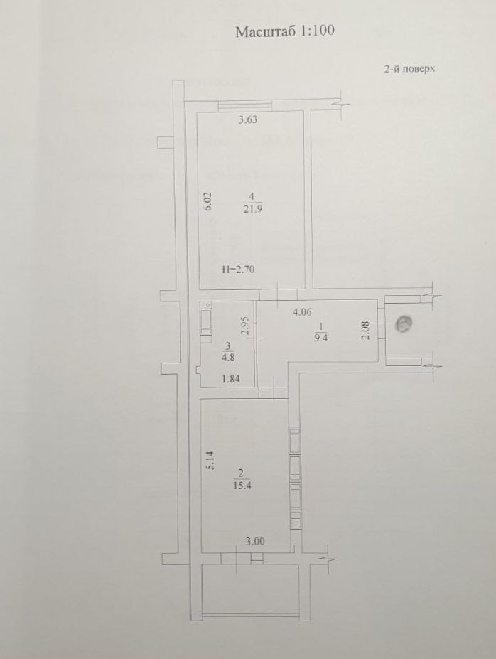 Квартира у будівельному стані під ремонт. Встановлено лічильник на тепло.